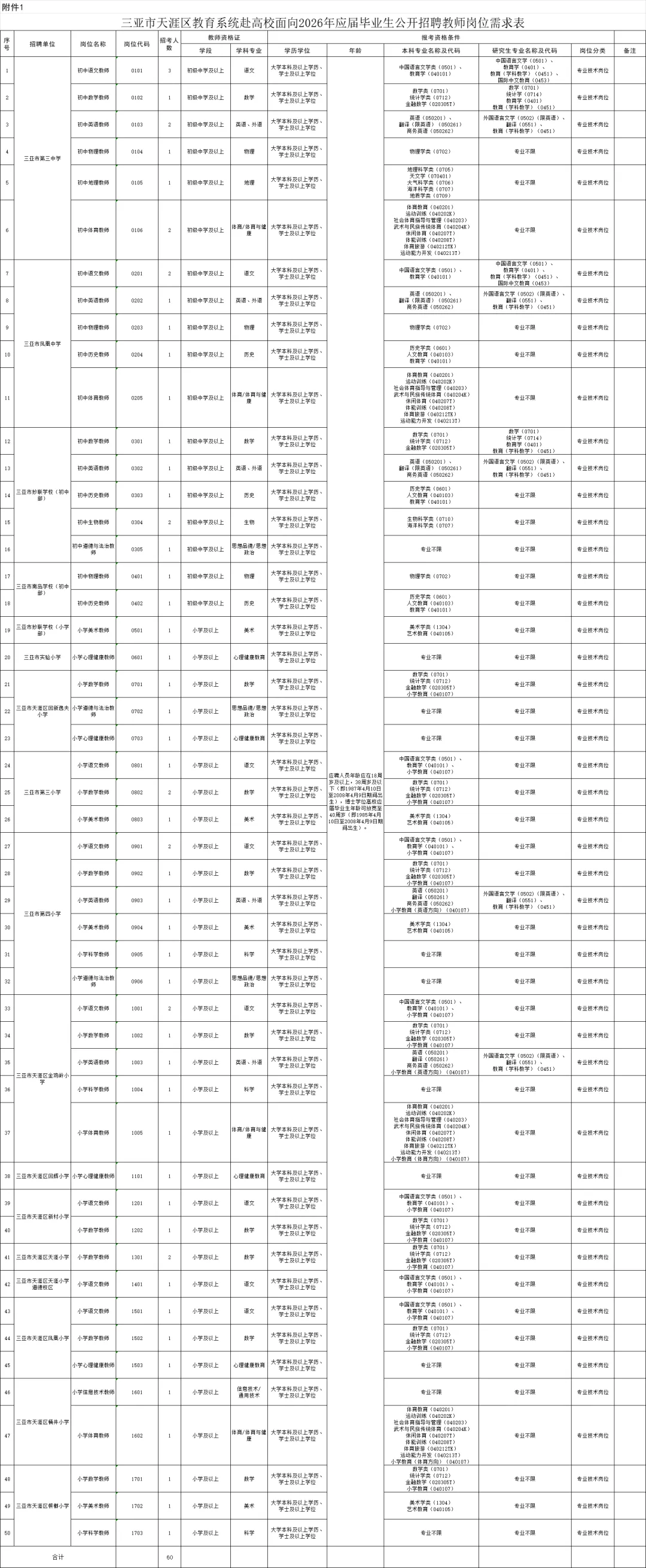 6.符合招聘公告及《三亚市天涯区教育系统赴高校面向2026年应届毕业生公开招聘教师岗位需求表》(附件1)所规定的资格条件。